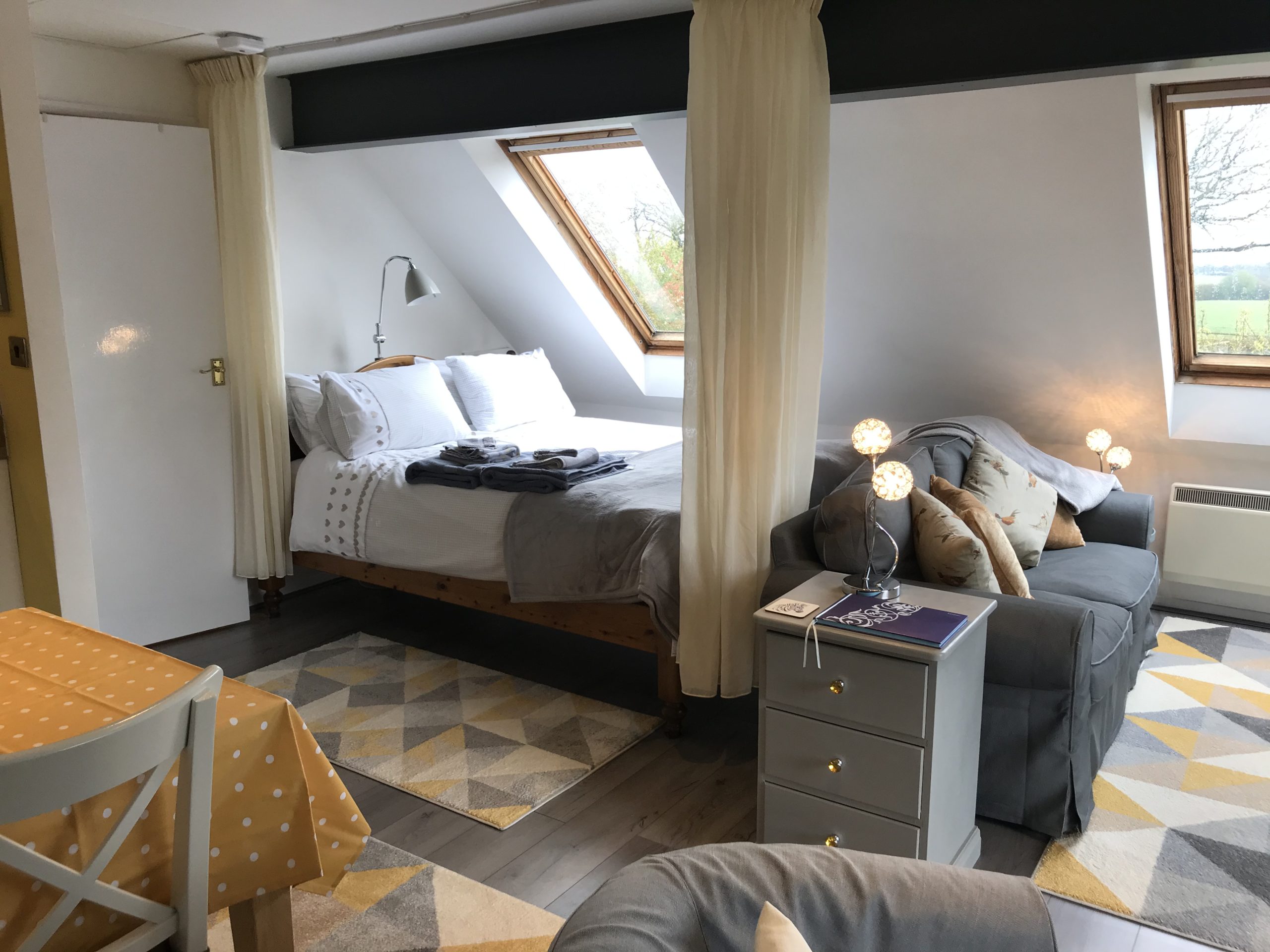 The Studio at Heath House has its own private entrance, a large living area containing a fully equiped kitchenette, dining table and sofa. I provide all linen and towels.